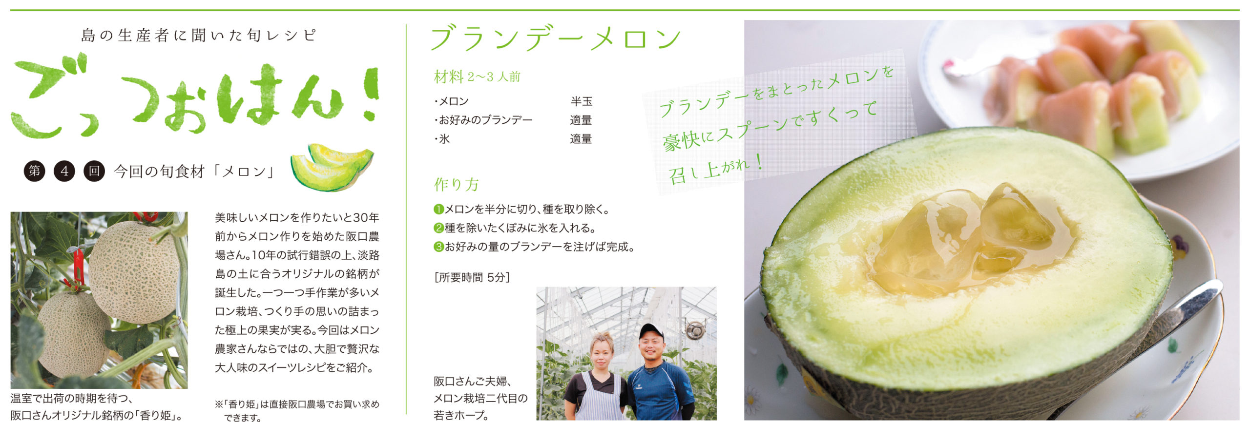 阪口農場さんは、美味しいメロンを作りたいと試行錯誤し、淡路島の土に合うオリジナルの銘柄をつくられた。今回はメロン農家さんならではの、大胆で贅沢な大人味のスイーツレシピをご紹介。