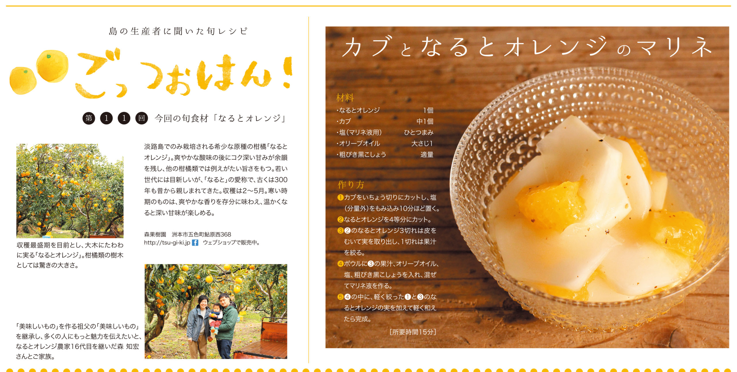 なるとオレンジは淡路島でのみ栽培される希少な柑橘。今月は森果樹園さんに、さっぱり美味しい、カブとオレンジのマリネレシピを教えてもらった。