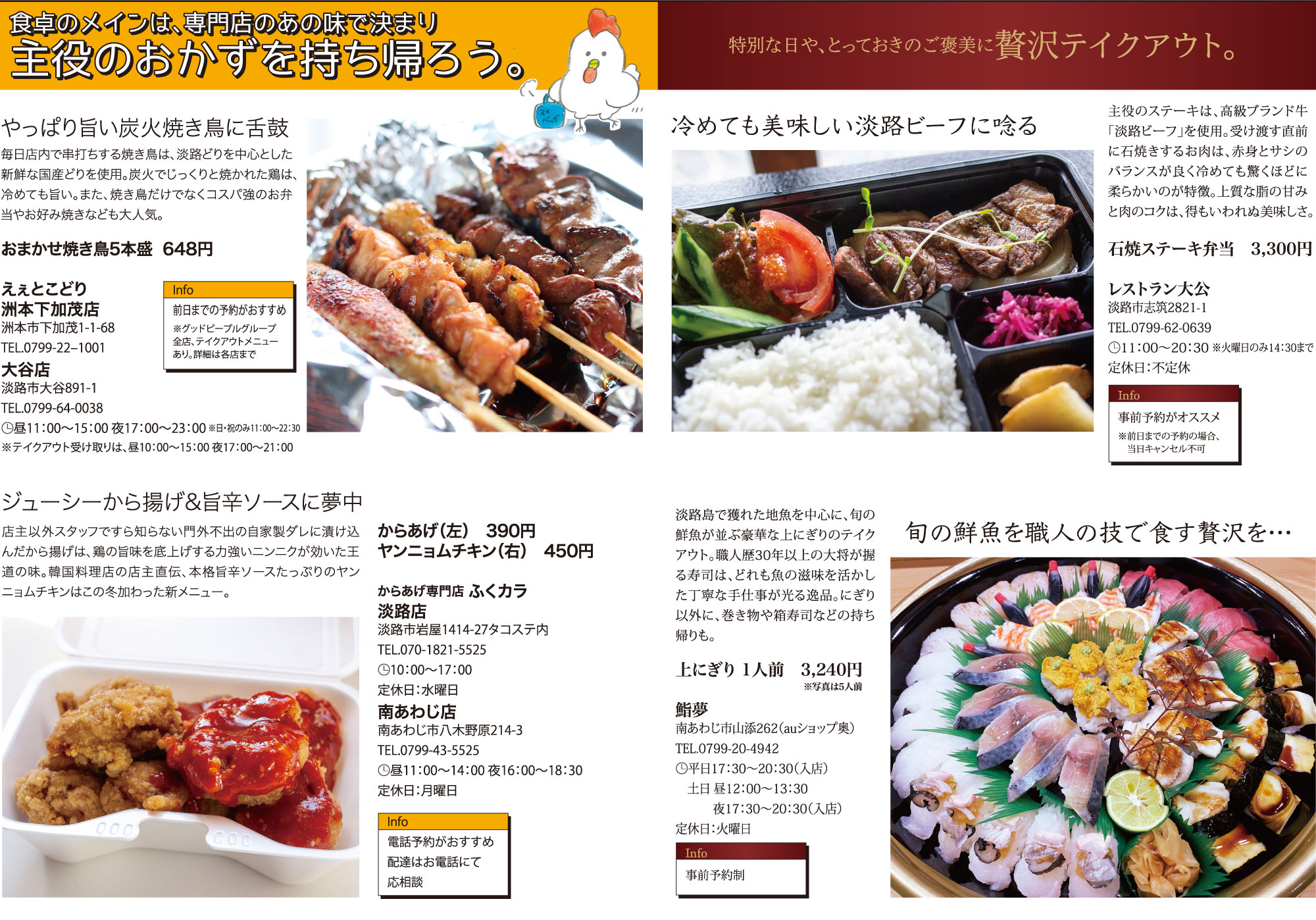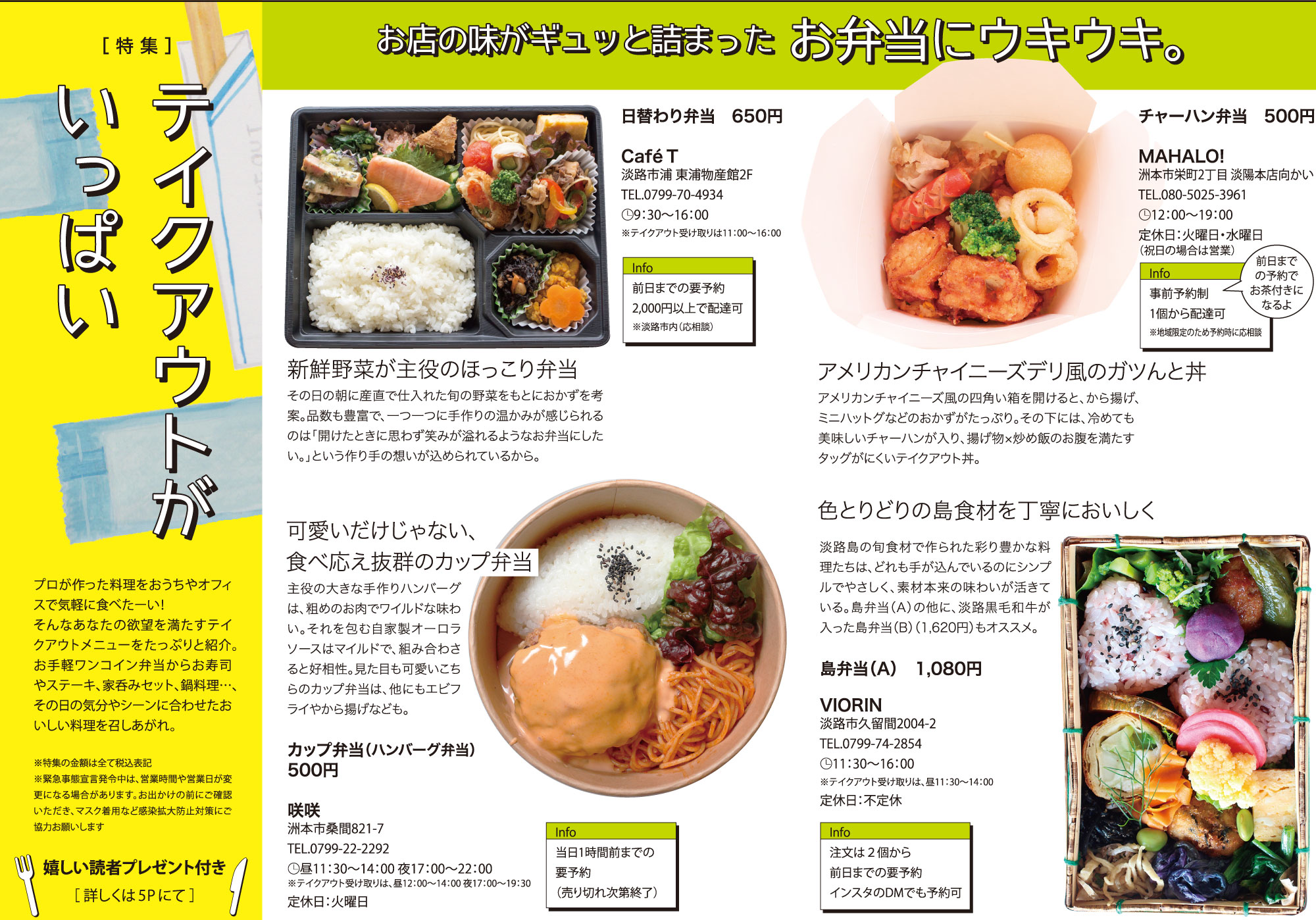 プロが作った料理を、おうちやオフィスで気軽に食べたーい!そんなあなたの欲望を満たすテイクアウトメニューを、たっぷりと紹介します。