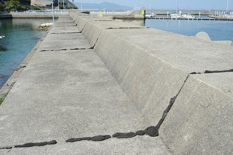 継ぎ目からはアスファルトだろうか、黒い物体がむにゅっとはみ出てる。