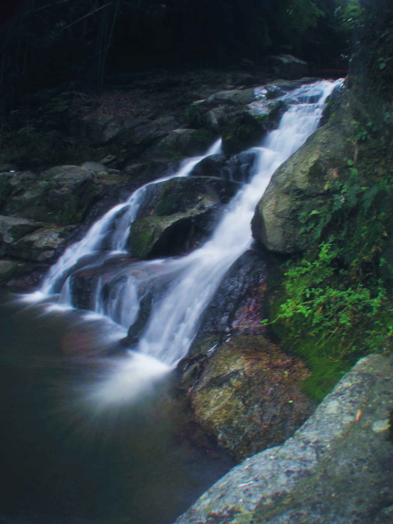 「2つのダム湖の前後に2つの滝が流れます。二の滝は苔生した岩々の渓谷に囲まれ、大きな滝壺に落ちる龍頭岩の滑瀑と、ダム下の段瀑が織り成す景色は最高です。カモやカワセミ、ウサギと野生動物も多く、実に居心地の良い隔絶された世界が存在しています。」