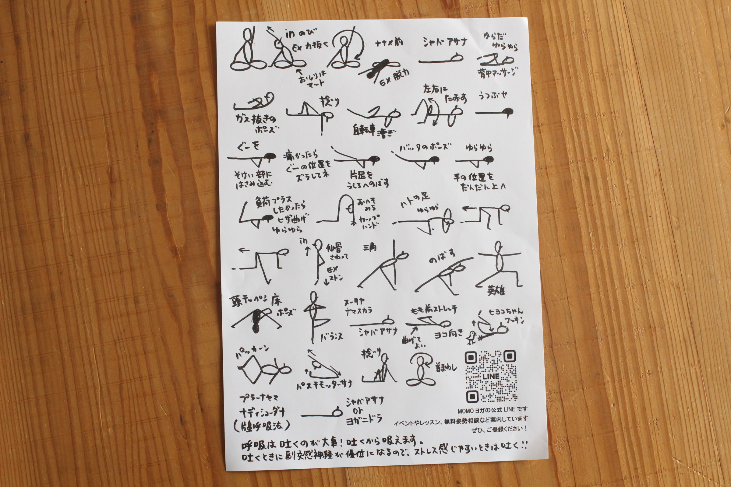 レッスン終了後には、今日行ったポーズがイラストで描かれた