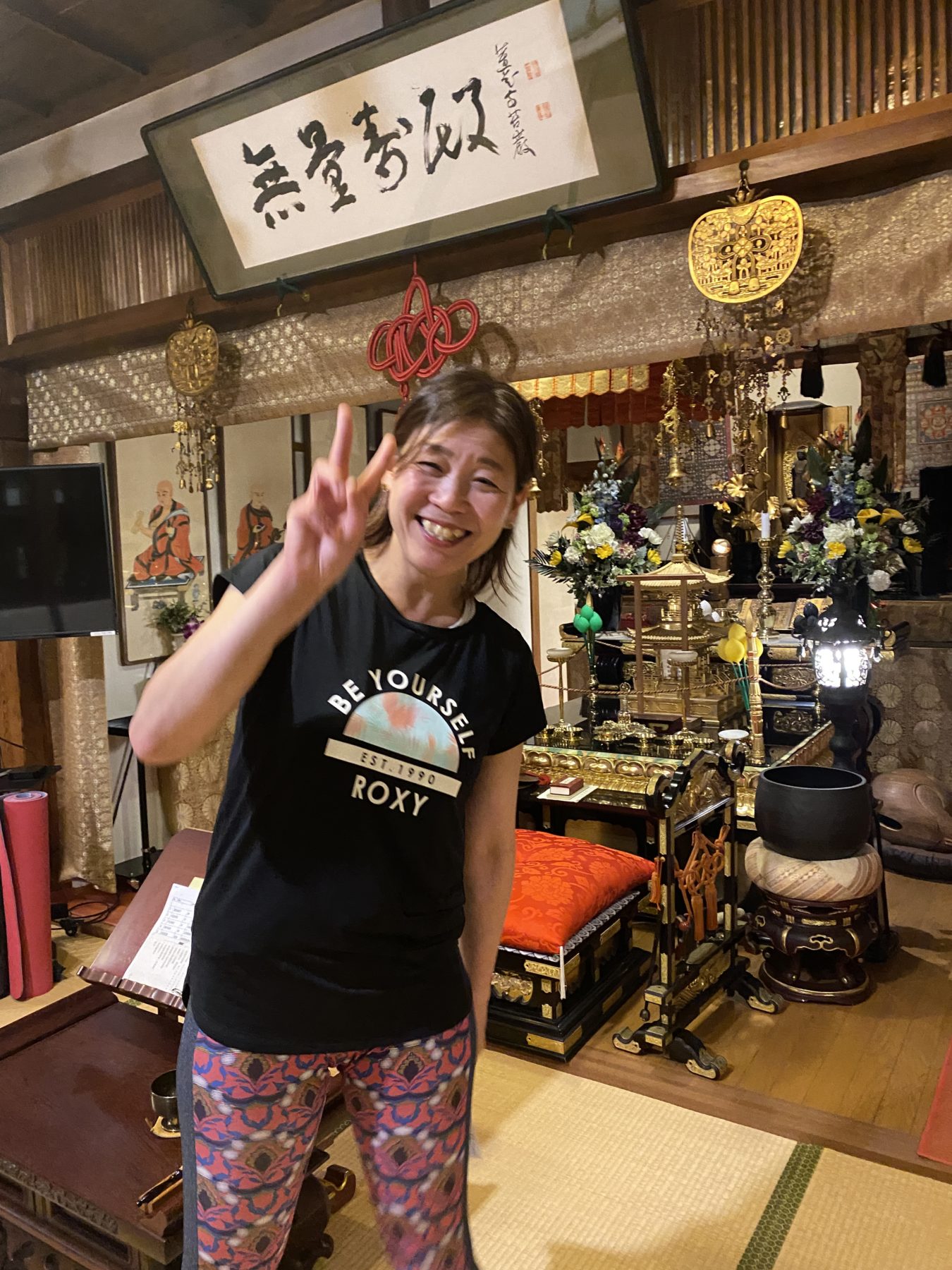 淡路島内でヨガレッスンをしているTOPOYOGA(トッポヨガ)の百山先生。今回は五色の極楽寺で行われるヨガレッスンにお邪魔してきました。