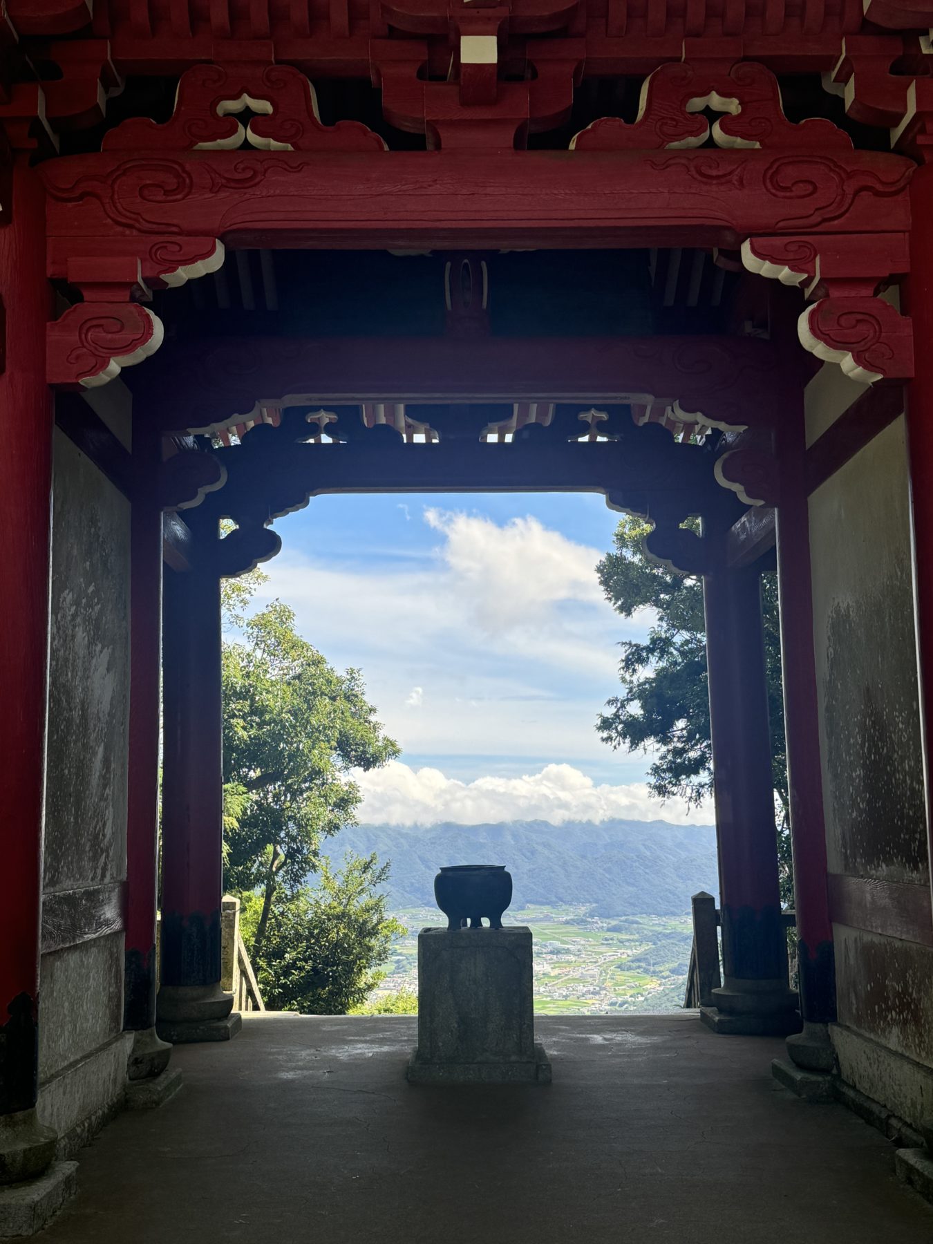 階段を登ると現れる本堂へは、こちらの立派な朱色の門をくぐります