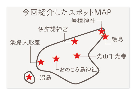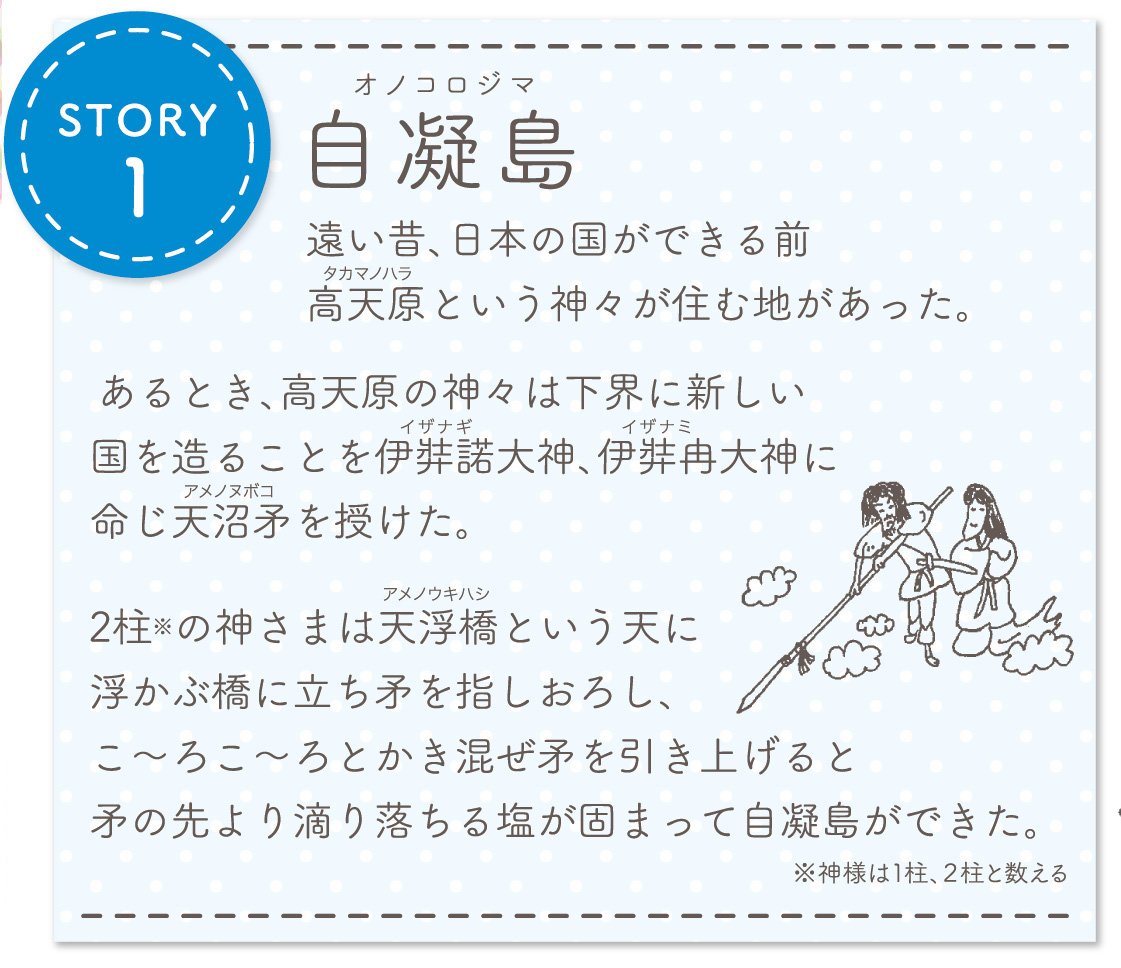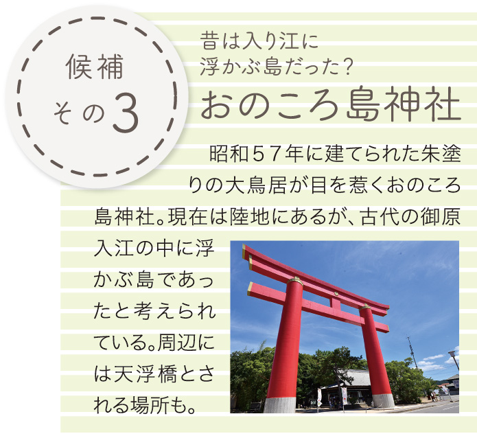 淡路島の方なら一度は(いや、それ以上に)聞いたことがある有名な夫婦の神様「伊弉諾大神・伊弉冉大神」。この2柱が神の国からおりたつ際に作った「自凝島」もご存じの方が多いはず。淡路島にはその「自凝島」だとされる島(かつて島)がなんと3か所も存在するらしい。皆さんはどこが有力だと思いますか?