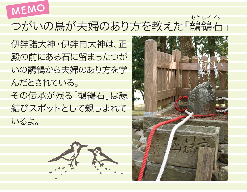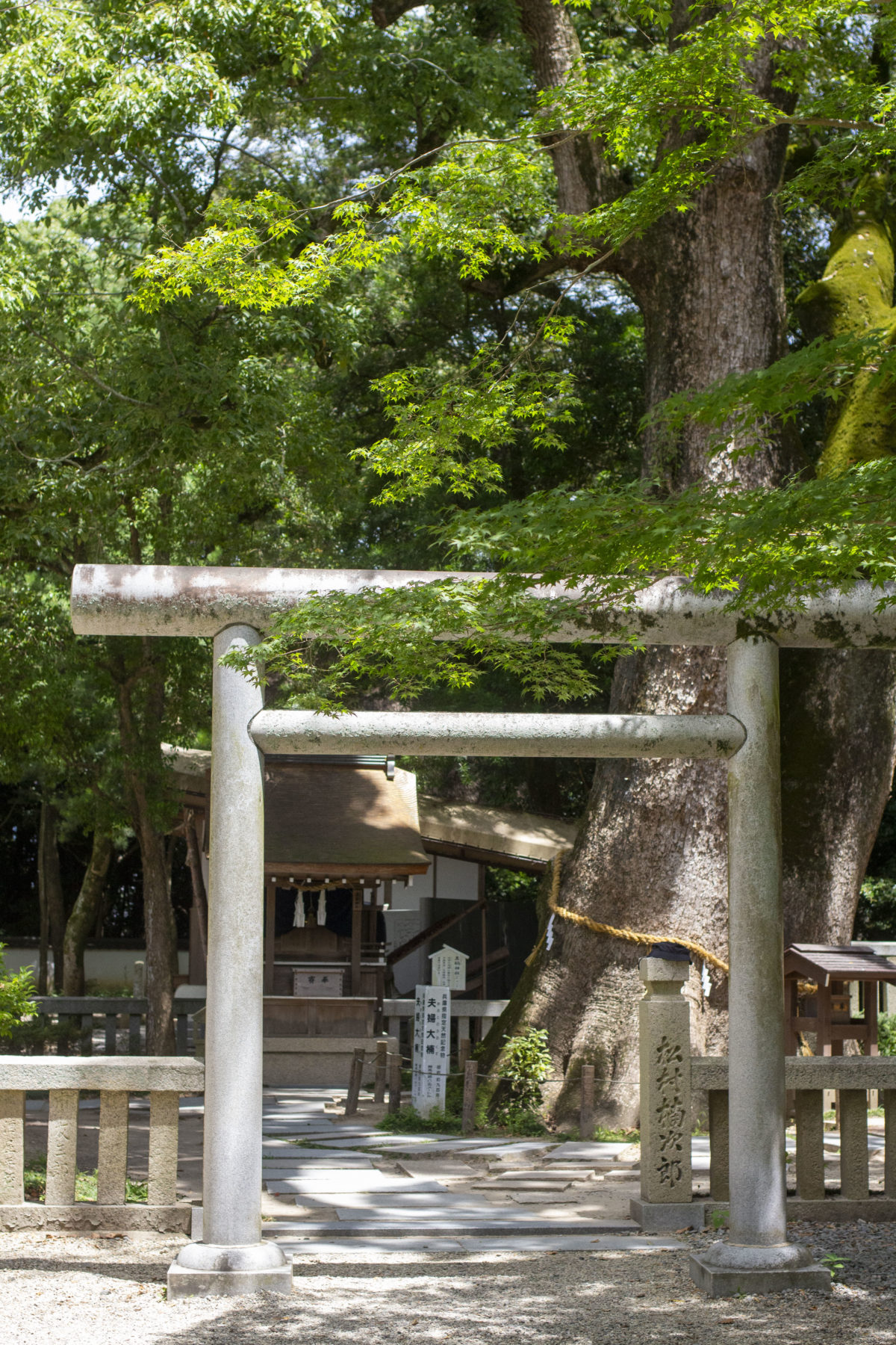 伊弉諾神宮の境内東側に、樹齢約900年の大楠が。もとは2株であったが成長に伴い1株になったという奇樹で幹は8,5mに及びます。2柱の御神霊が宿る御神木として、夫婦円満・安産子宝・良縁成就の信仰が篤い人気のスポットです。