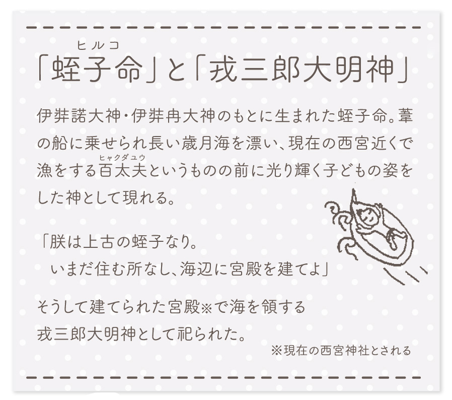 淡路市岩屋にある「岩屋恵比寿神社」の裏には蛭子命を祀る「岩樟神社」があります。こちらの神社には洞窟があり、そこは伊弉諾大神が最初の幽宮だと言われています。また、伊弉諾神宮の夫婦大楠の隣にも岩樟神社が。こちらの神社には平安時代に作られたとされる蛭子命のご神体が祀られています。