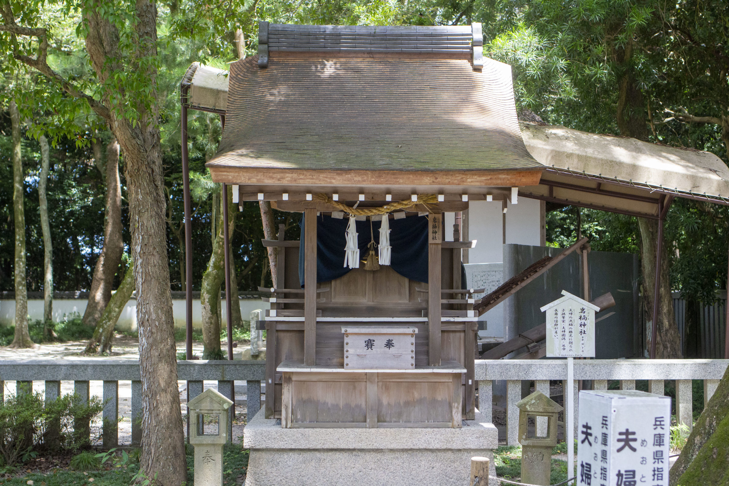 本堂の左隣には伊弉諾大神、伊弉冉大神が祀られた祠があります。自然と相まって神聖な雰囲気に包まれた雰囲気のある祠です。